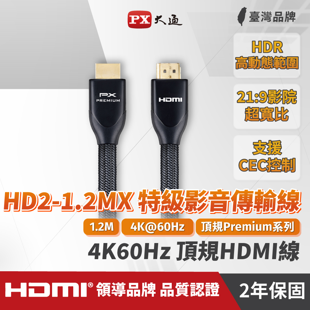 PX大通 HD2-1.2MX 1.2公尺HDMI Premium認證高速HDMI傳輸線